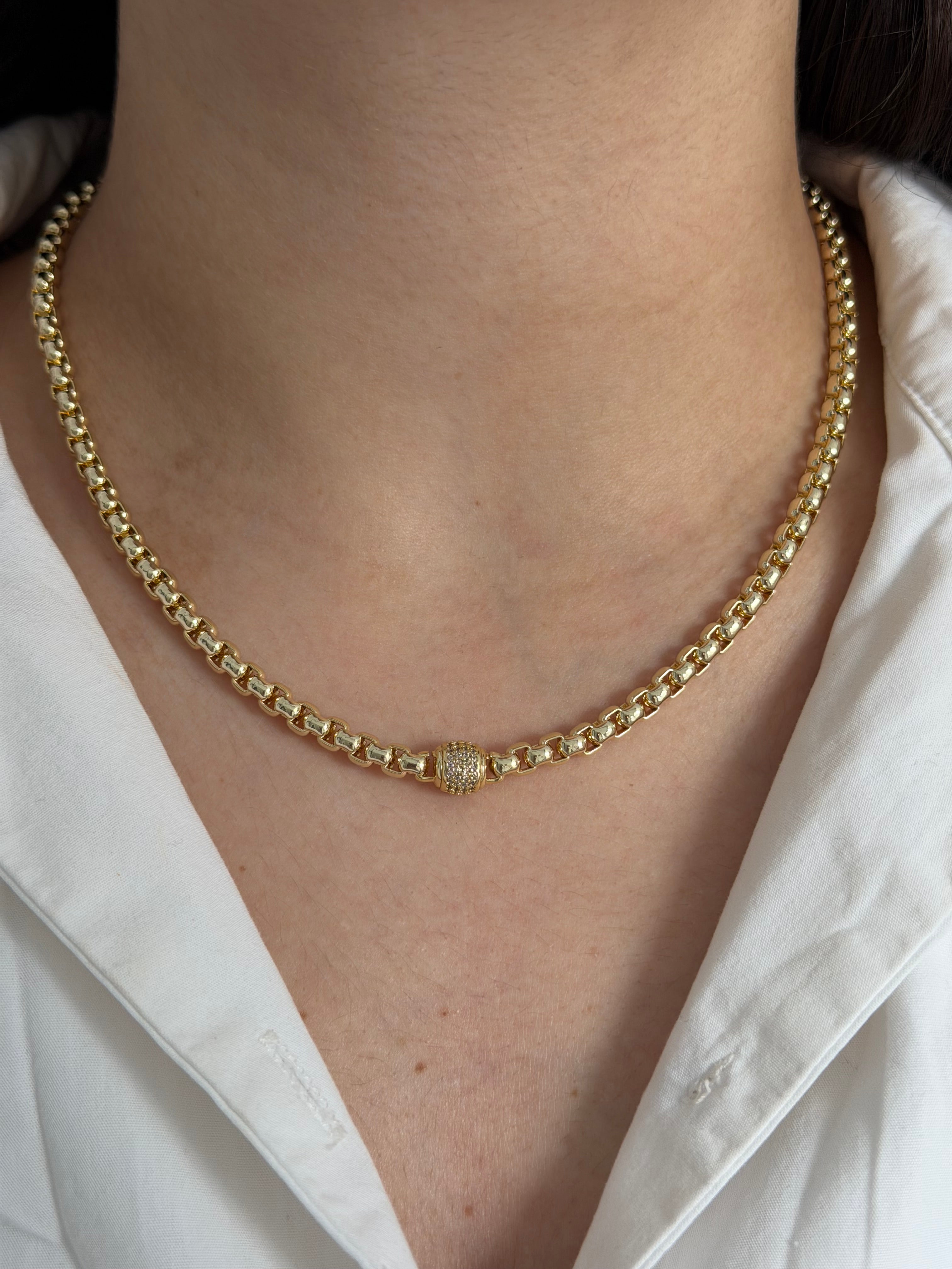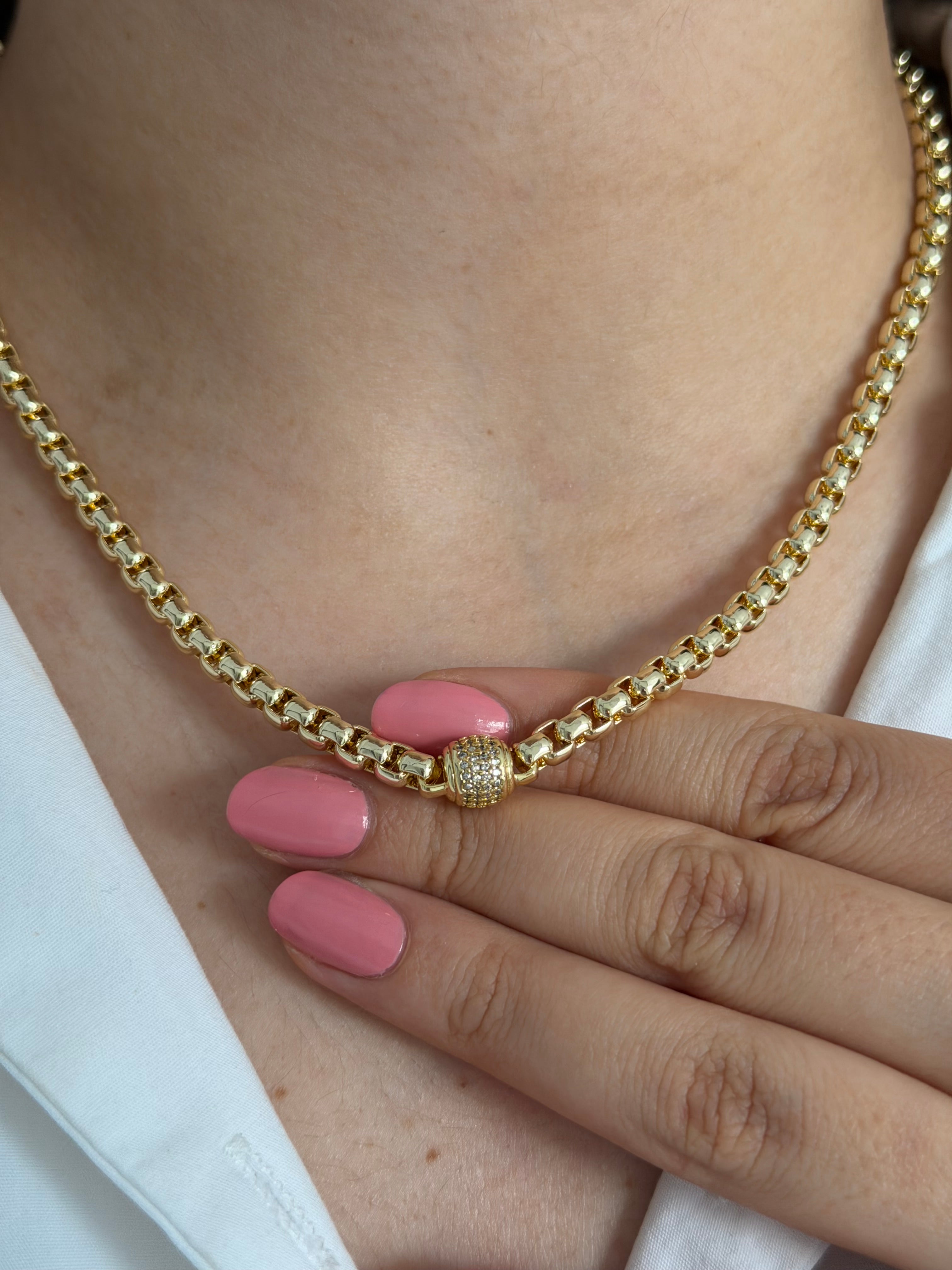 MATERYALİ YÜKSEK KALİTE PİRİNÇ ÜZERİ 14K ALTIN KAPLAMADIR. ÜZERİNDE Kİ TAŞLAR ZİRKONDUR.ALERJİ TESTİNDEN BAŞARI İLE GEÇTİĞİ İÇİN HASSAS CİLTLER İÇİN DE UYGUNDUR.UZUN SÜRELİ KULLANIM VE PARLAKLIĞINI KAYBETMEMESİ İÇİN PARFÜM, DETERJAN GİBİ KİMYASALLARLA TEMAS ETMEMESİ ÖNERİLİR. ÜRÜN UZUNLUĞU 45+6cm.